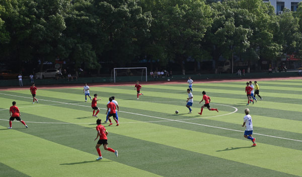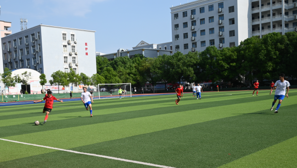 本网讯(通讯员 摄影 赵红深)绿茵点亮梦想,足球彰显青春。由共青团衡阳市委、衡阳市文化旅游广电体育局 、衡阳市青年联合会和衡阳市学生联合会主办的“助力第三届湖南省旅发大会暨衡阳市青少年校园足球大学生联赛” 5月21日在湖南环境生物职技术学院开幕,5月24日第四轮比赛在我校进行。上午8时30分,湖南环境生物职技术学院对湖南工学院;上午10时20分,湖南高速铁路学院对衡阳师范学院;下午16时,湖南财经工业职业技朮学院对我校。