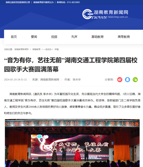 下一篇 :【红网时刻】湖南交通工程学院第四届校园歌手大赛总决赛结果新鲜出炉