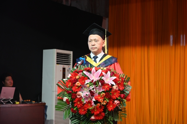 山长水阔,背上行路锦囊。校学位评定委员会主席、校长陈治亚以《行之于途而应于心》为题作精彩致辞。他代表学校全体师生向学有所成、顺利毕业的2024届全体毕业生表示热烈祝贺,为他们的成长与进步感到欣慰。他指出,2024届毕业生是与时代同频共振的一届毕业生、是与学校携手共进的一届毕业生、是生逢其时、重任在肩的一届毕业生。同时,他饱含深情地对毕业生们寄语两点期望:一是认识你自己。认识自己就是认识世界,我们只有在广阔的天地才能真正的人生自我,认识自己就要了解自己的生理、心理的优劣势,让自己符合公认的道德和人性。二是成为你自己。通过自我观察和认识,我们通常可以发现自己优势、弱点和热情所在,同时我们应该尝试新生事物和经历,以扩大自己的视野,从而更好的了解自己的兴趣和追求。他建议同学们步入社会以后要多抽一点时间,多读一些哲学与世界经典,不负韶华、不负时代,敢于有梦、勇于追梦,全心全意把每一项工作做好就是不平凡,把每一件小事做好就是大事业。他表示,“湘交院”是学子们梦想启航的地方,无论走向何处、行至多远,母校永远是大家的坚强后盾和精神家园,母校永远会为大家祝福、给大家力量,欢迎同学们常回家看看。