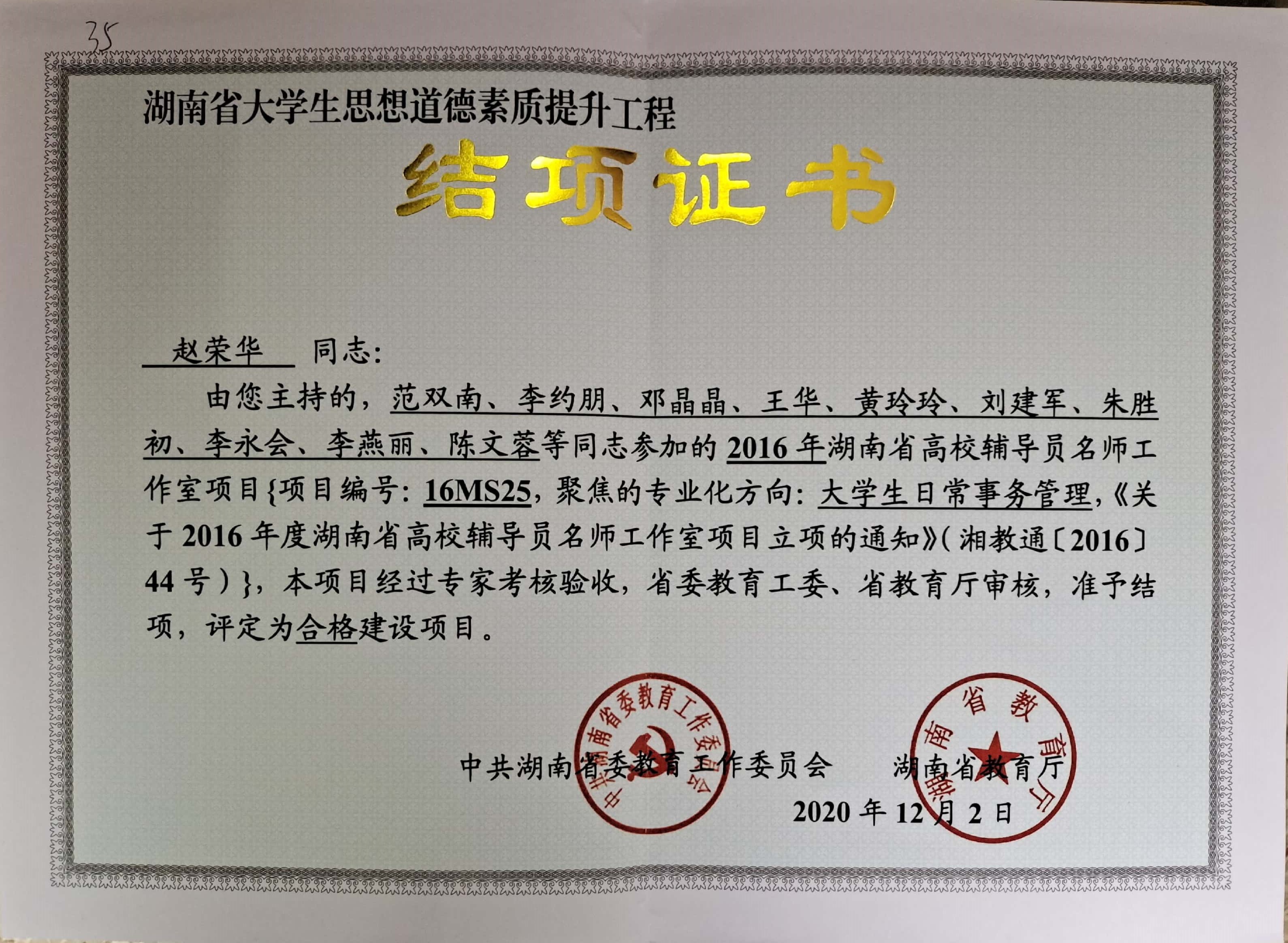 本网讯(通讯员 赵红深)日前,湖南省教育厅发布通知,公布2020年湖南省大学生思想道德素质提升工程大学生思想政治教育改革创新项目等四类项目结项结果,我校刘俊国主持的2016年立项大学生思想政治教育改革创新项目《应用技术型民办本科院校思想政治教育实效性研究与实践》和赵荣华主持的2016年立项湖南省高校辅导员名师工作室项目《大学生日常事务管理》经专家考核验收,省委教育工委、省教育厅审核,准予结题。