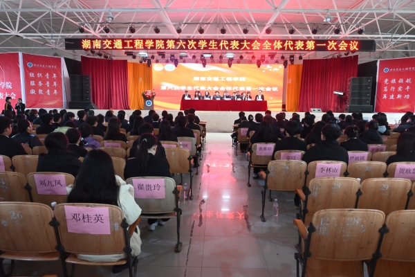 本网讯(通讯员 摄影 赵红深 大学生记者团张海容 姜梓彤 李祉扬 王超 李程鹏 )12月6日上午,湖南交通工程学院第六次学生代表大会在大学生活动中心正式开幕。共青团衡阳市委副书记江发明,湖南省学联驻会执行主席骆丽花、南华大学校学生会主席团成员雍思杨应邀出席会议;副校长蔡炎斌、工会副主席何美生,学工部长赵荣华,学校相关职能部门负责人,各二级学院党总支书记、副书记,151名学生代表参加开幕式。湖南大学、湖南师范大学等26所高校学生会为大会的召开发来贺信。